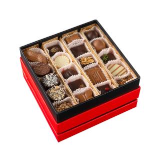 We offer a variety of boxes to hold your pralines. We have a permanent collection as well as limited-edition seasonal boxes that change throughout the year. The permanent collection includes the traditional ballotin (available only in stores), our square boxes, our champagne box, and our travel ballotins (ideal for online orders).