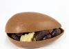 Oeuf à la coquille pralinée et biscuitée. Cet est oeuf est composé de deux coquilles (Lait, Blanc ou/et Noir) avec son mélange de pralines pralinées (Lait, Blanc et Noir)